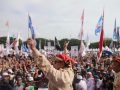 Mapos, Bali – Capres nomor urut 02 Prabowo Subianto menggelar kampanye terbuka di Lapangan Kompyang, Denpasar, Bali, Selasa (26/3). Kepada seluruh pendukungnya yang hadir, Prabowo berjanji akan menurunkan harga sembilan bahan pokok (sembako), tarif dasar listrik hingga BBM di 100 hari pertama pemerintahannya.