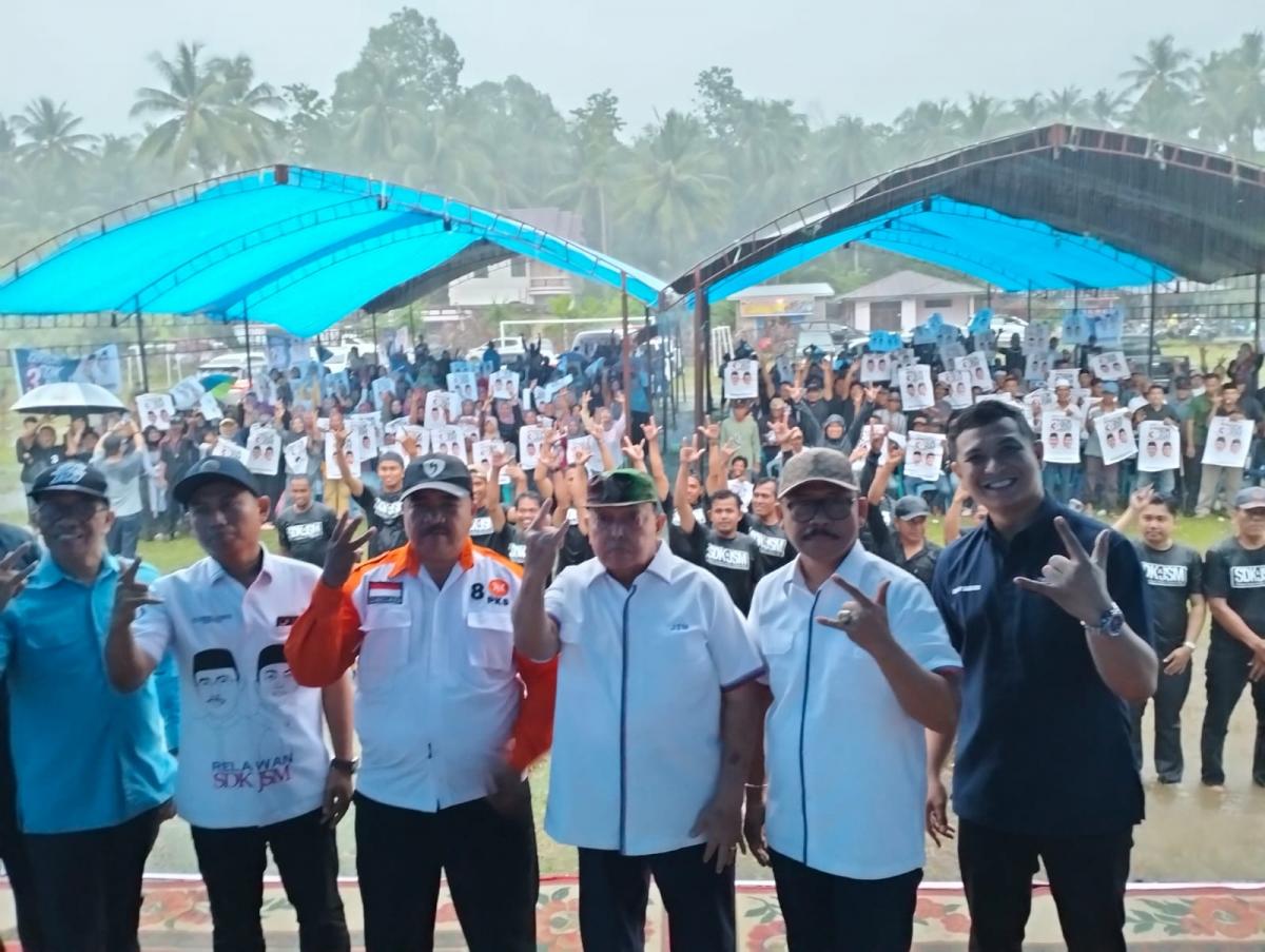 Diketahui, hujan deras turun tidak mematahkan ratusan masyarakat Katumbangan Lemo hadir mengikuti kampanye terbatas SDK-JSM.