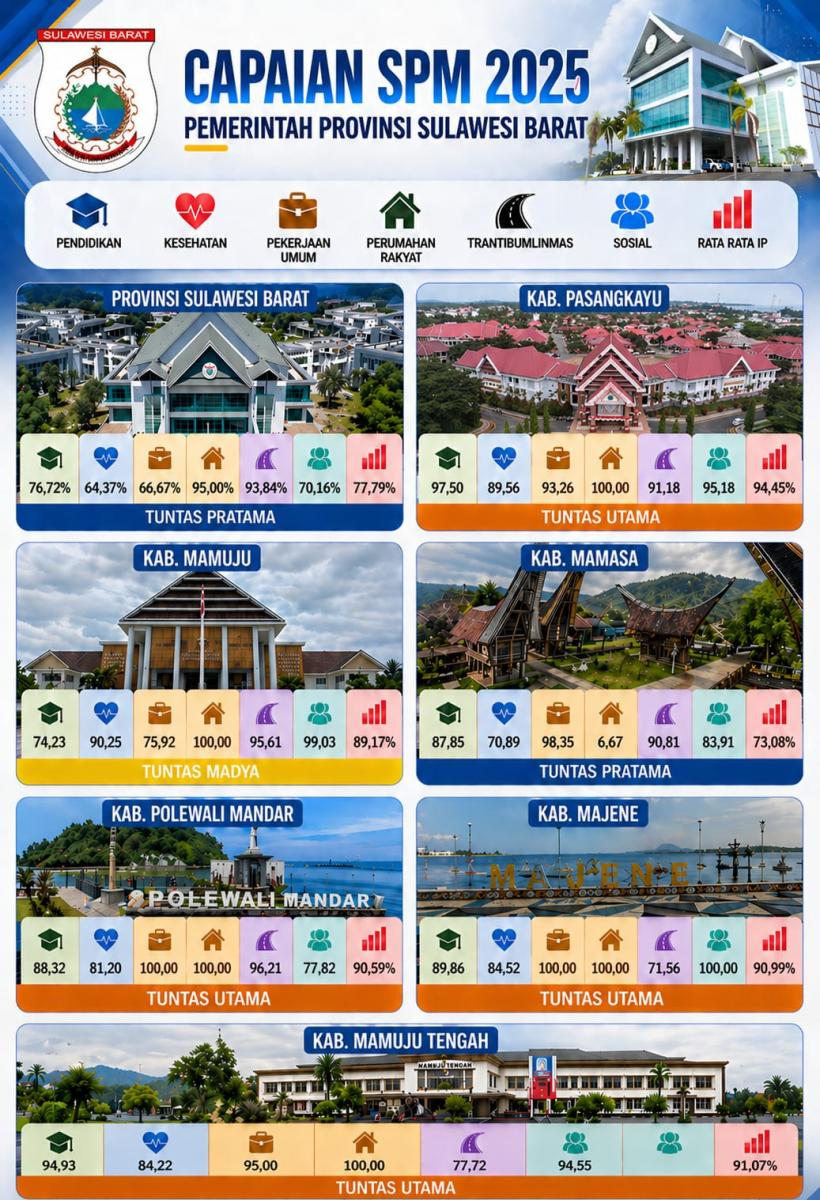Mapos, Mamuju – Penerapan Standar Pelayanan Minimal (SPM) pada tahun 2025 menunjukkan perkembangan yang cukup signifikan. Secara umum, capaian SPM berhasil mencapai nilai rata-rata 77,79. yang mencerminkan adanya peningkatan kinerja pemerintah daerah Provinsi Sulawesi Barat dalam memenuhi pelayanan dasar kepada masyarakat.
