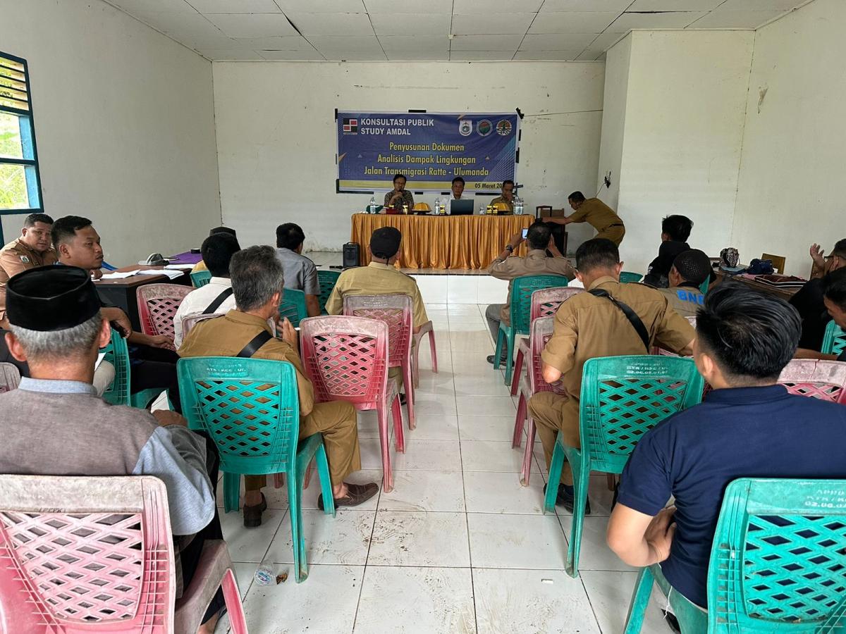 Mapos, Majene — Konsultasi Publik Dalam Rangka Penyusunan Dokumen Analisis Dampak Lingkungan ( Amdal) Jalan di kawasan Transmigrasi Ratte – Ulumanada dilaksanakan oleh dinas transmigrasi sebagai pemrakarsa. kegiatan tersebut dilaksanakan di Aula Kantor Kecamatan Ulumanda, Kabupaten Majene. Selasa, 5 Maret 2024.