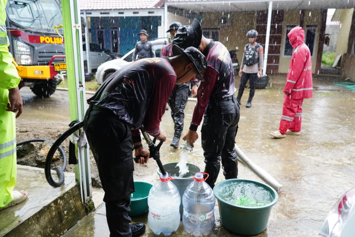 Banjir yang terjadi akibat hujan deras selama beberapa hari terakhir telah menyebabkan genangan air di sejumlah wilayah, sehingga banyak sumur warga tercemar dan pasokan air bersih terhenti. Menanggapi hal ini, Polda Sulbar menerjunkan personelnya beserta kendaraan tangki air ke lokasi-lokasi terdampak, seperti Perumahan Puri Mutiara 3 Mamuju dan Perumahan Timbu Mamuju.