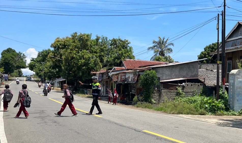 Mapos, Mamuju – Dalam upaya menanamkan kedisiplinan dan kesadaran keselamatan berlalu lintas sejak usia dini, jajaran PJR Ditlantas Polda Sulawesi Barat terus mengintensifkan kegiatan pengaturan dan edukasi di lingkungan sekolah.