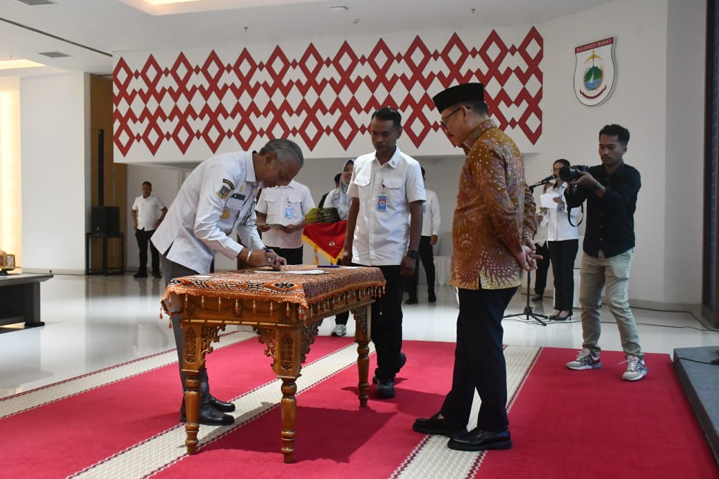 Mapos, Mamuju – Para Pimpinan Organisasi Perangkat Daerah (OPD) Lingkup Pemprov Sulbar melakukan Penandatanganan Pakta Integritas dan Perjanjian Kinerja Pejabat Pimpinan Tinggi Pratama dihadapan langsung Gubernur Sulbar, Suhardi Duka, berlangsung di Ballroom Andi Depu Lantai 3 Kantor Gubernur Sulbar, Rabu, 16 Juli 2025 malam.