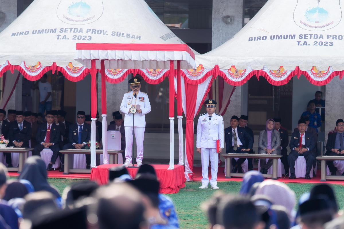 Mapos, Mamuju — Gubernur Sulawesi Barat (Sulbar), Suhardi Duka (SDK) memimpin upacara peringatan hari Otonomi Daerah (Otda) ke- 29 tingkat Provinsi Sulbar, Jumat, 25 April 2025.