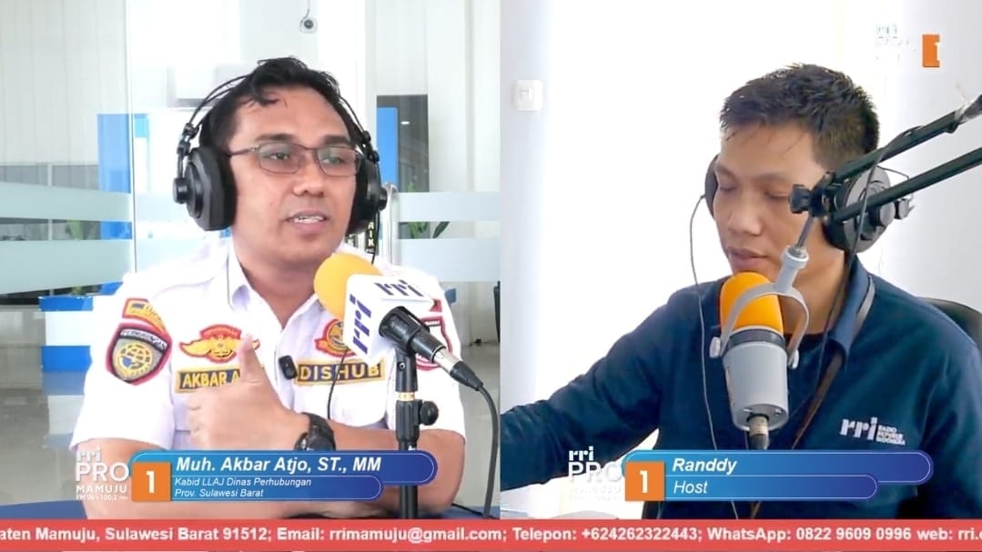 Mapos, Mamuju – Kepala Bidang Lalu Lintas dan Angkutan Jalan (LLAJ) Dinas Perumahan Rakyat, Kawasan Permukiman dan Pertanahan serta Perhubungan (Perkimtanhub) Provinsi Sulawesi Barat Muh. Akbar Atjo, menjadi narasumber dalam dialog interaktif Sulbar yang mengangkat tema “Evaluasi lintas sektor arus balik Lebaran”, Selasa (31/3).