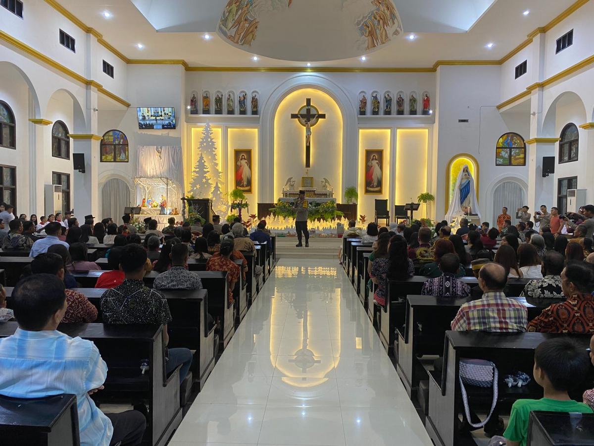 Gereja Kristen Sulawesi Barat (GKSB) Bukit Sion di Jalan Sultan Hasanuddin menjadi sasaran pertama kunjungan Kapolda. Ia kemudian melanjutkan perjalanannya ke Gereja Katolik Santa Maria di Jalan Bau Massape nomor 14 Mamuju. Di setiap gereja, Kapolda tidak hanya memantau jalannya pelaksanaan ibadah dan memastikan seluruh personel memberikan pelayanan terbaiknya, tetapi juga secara langsung menyampaikan ucapan Selamat Natal kepada para jemaat, Selasa (24/12/24).