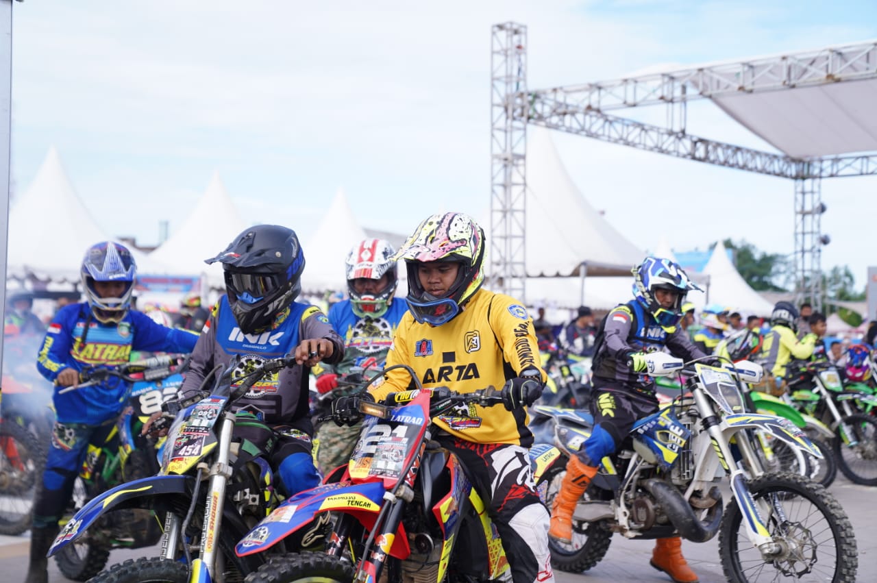 Mapos, Mamuju — Ratusan rider trail dari berbagai wilayah hadir memeriahkan event one day trail jelajah bumi Manakarra 4 dalam rangka hari Bhayangkara ke-76.
