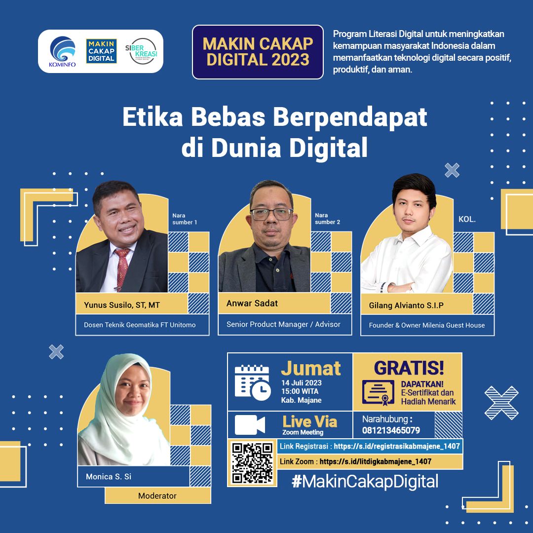 Kegiatan bertajuk “Etika Bebas Berpendapat di Dunia Digital” ini akan berlangsung pada 14 Juli 2023 melibatkan Komunitas Teknik Sipil Majene.