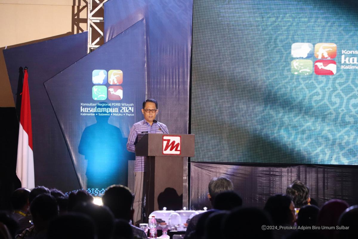 Itu disampaikan dalam rangkaian pembukaan Kegiatan Konreg PDRB Kasulampua dan Musrenbang Regional Sulawesi Tahun 2024 di Ballroom Grand Maleo Hotel dan Convention Mamuju, Kamis (15/5/2024).