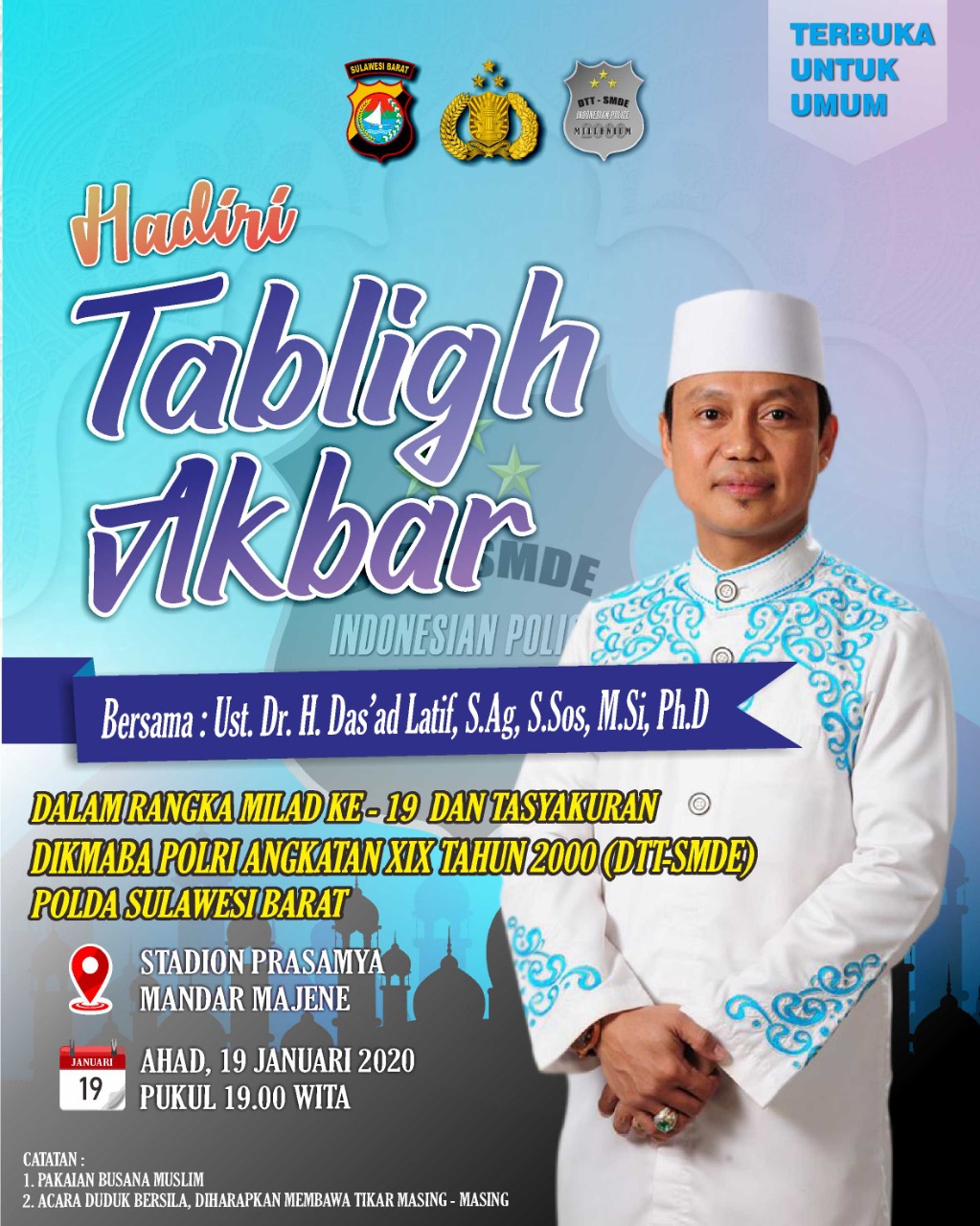 Tabliqh akbar ini rencananya akan digelar secara terbuka di Stadion Prasamnya Mandar pekan depan dan akan turut dihadiri Kapolda Sulbar, Brigjend Pol Baharuddin Djafar untuk memberikan arahan dan motivasi.