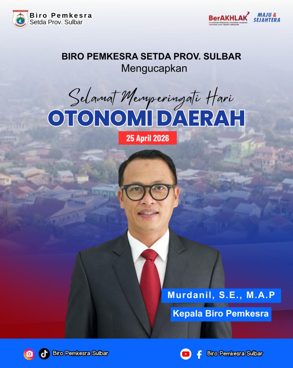 Ia juga menyampaikan ucapan, “Selamat memperingati Hari Otonomi Daerah, 25 April 2026.”