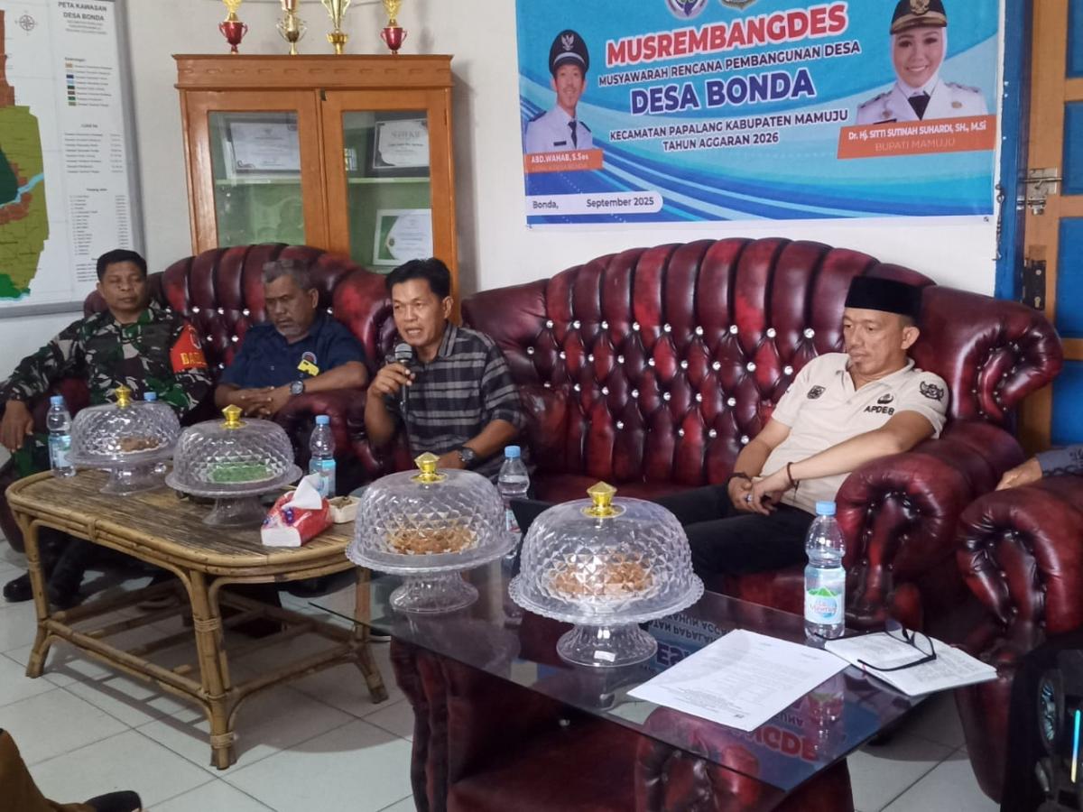 Mapos, Mamuju – Pemerintah Desa Bonda menggelar Musrenbang penyusunan Rencana Anggaran Pendapatan dan Belanja Desa (RAPBDes) Tahun 2026, Kegiatan ini berlangsung di Aula Kantor Desa Bonda Kecamatan Papalang, kabupaten Mamuju, provinsi Sulawesi Barat. Selasa (07/10/2025).