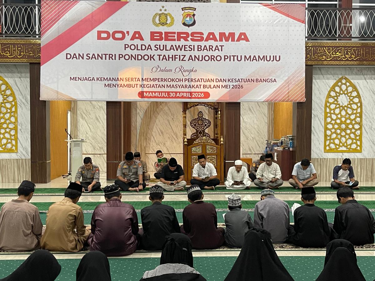 Mapos Mamuju– Dalam rangka menjaga stabilitas keamanan serta memperkokoh persatuan dan kesatuan bangsa menyambut berbagai kegiatan masyarakat di bulan Mei, Kepolisian Daerah Sulawesi Barat menggelar kegiatan doa bersama.