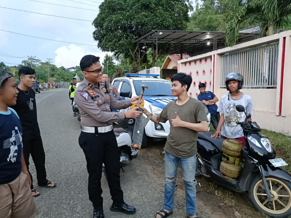 “Razia ini menyasar pengendara roda dua yang menggunakan knalpot brong dan pengendara yang tidak menggunakan kelengkapan dalam berkendara dengan surat tilang,” Ujar AKBP Muh Islam.