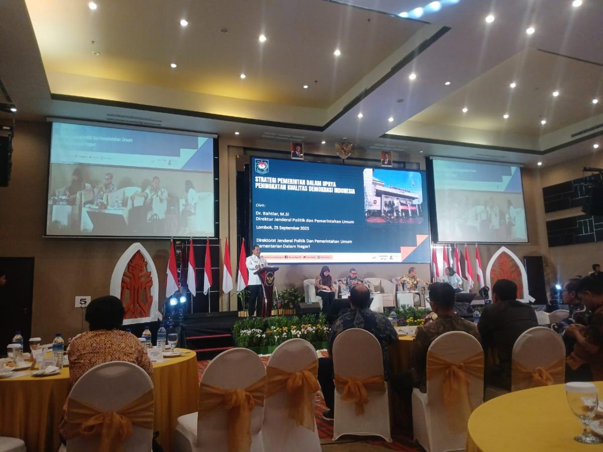 Rakornas dibuka secara resmi oleh Wakil Gubernur Nusa Tenggara Barat, Hj. Indah Dhamayanti. Dalam sambutannya, ia menekankan pentingnya sinergi antar pemangku kepentingan di semua tingkatan dalam menjaga kualitas demokrasi dan memperkuat kelembagaan pemerintahan. Hal ini dianggap sebagai kunci agar Indonesia mampu menjawab tantangan global menuju visi besar Indonesia Emas 2045.