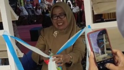Mapos, Mamuju — Kepala Dinasi Pendidikan, Pemuda dan Olahraga Kabupaten Mamuju Murniani, meresmikan Gerobak Literasi…
