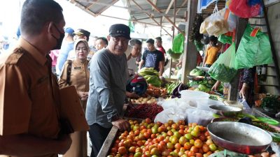 Mapos, Majene — Penjabat Gubernur Sulawesi Barat Bahtiar Baharuddin meninjau harga pangan di pasar Majene…