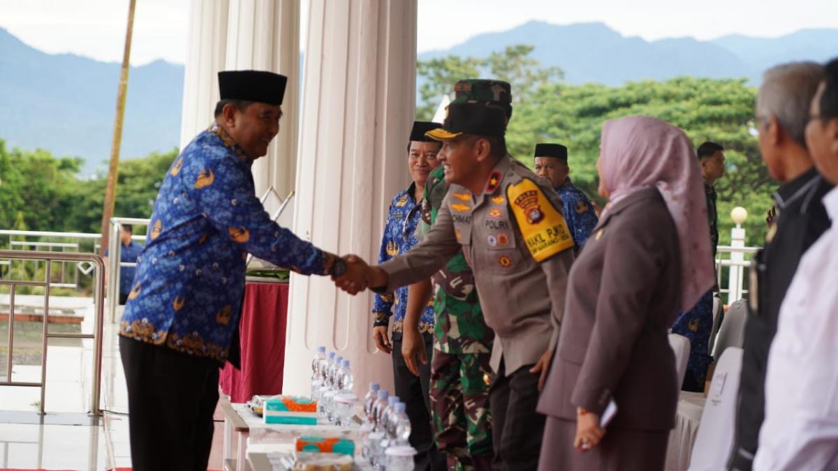 Upacara yang berlangsung khidmat ini dipimpin oleh Pj Gubernur dan dihadiri oleh para forkopimda serta seluruh tamu undangan lainnya.